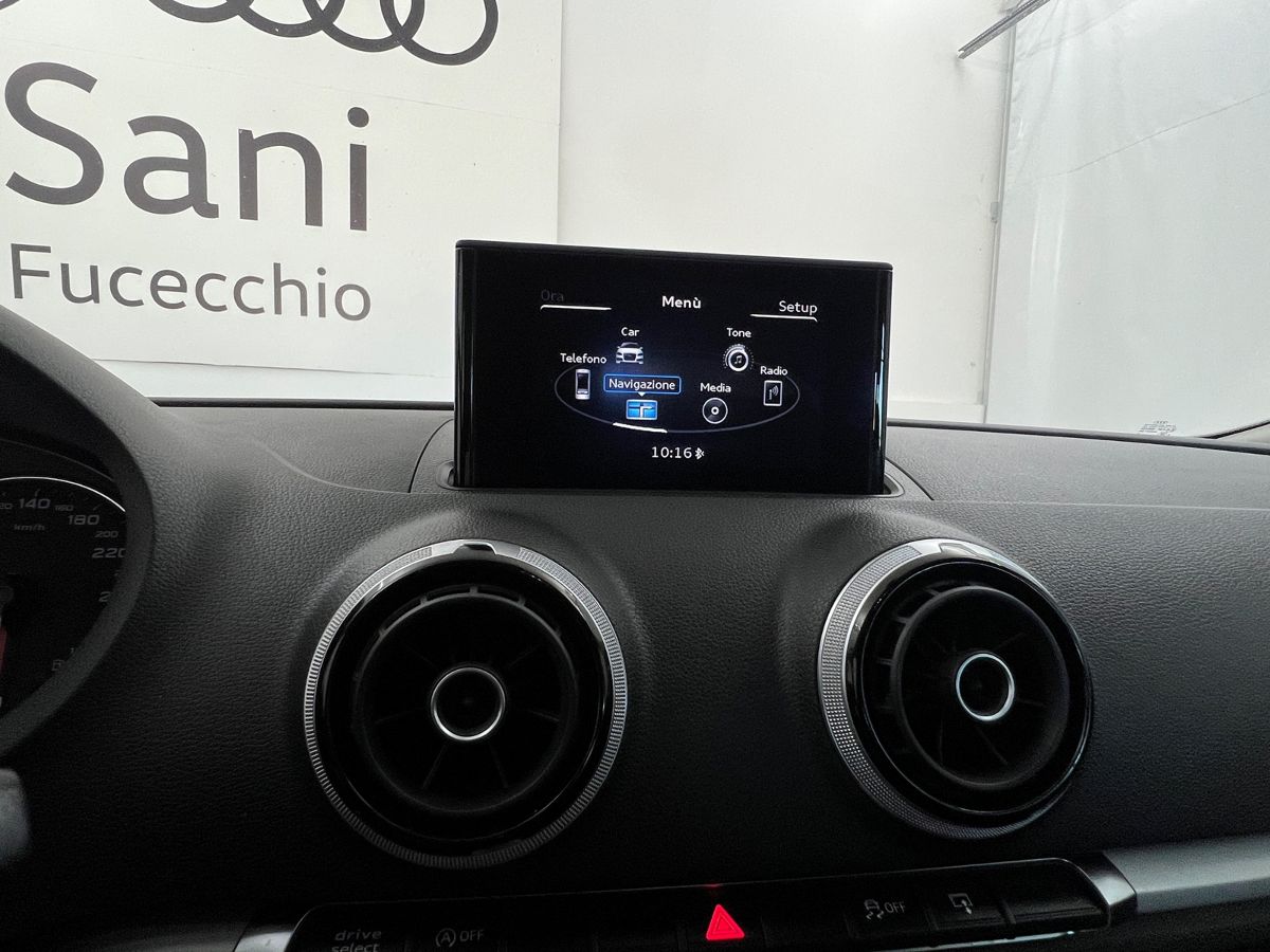 Audi drive select.Impostazione delle caratteristiche della vettura secondo le modalità disponibili, ovvero auto, comfort, dynamic, efficiency e individual, con adattamento del servosterzo, delle curve caratteristiche del motore e del cambio (per S tronic) e impostazione di altri equipaggiamenti fornibili a richiesta (ad es. Audi magnetic ride). La modalità efficiency prevede impostazioni di base ottimizzate per i consumi che riguardano motore, cambio (per S tronic), climatizzazione, nonché per Adaptive cruise control (a richiesta) e regolatore di velocità. La modalità individual è disponibile solo con la radio MMI® o il sistema di navigazione MMI® plus con MMI® touch (di serie per Audi 1.6 TDI ultra). A3 Sportback g-tron con cambio manuale non prevede la funzione Efficiency nell'Audi Drive Select, né la funzione Eco del clima