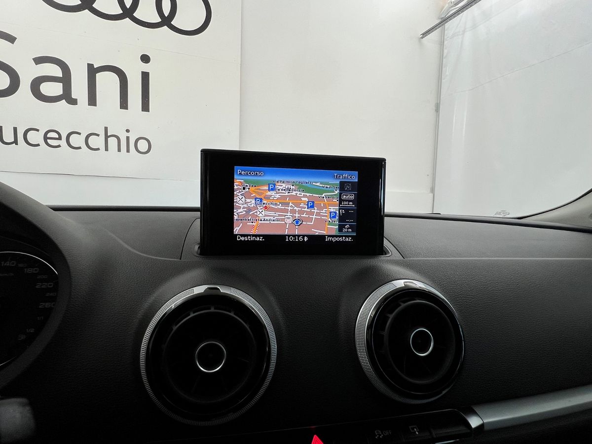 Pacchetto di navigazione comprende il pacchetto Connectivity (Audi music interface, interfaccia Bluetooth con audio streaming Bluetooth, predisposizione per navigatore e lettore supplementare schede memoria SDXC fino a 2 TB), dati di navigazione (scheda SD), visualizzazione delle mappe su display a colori da 5,8 pollici ad apertura elettrica e gestibile tramite radio MMI®, volante multifunzionale in pelle o comando vocale. Cavo adattatore per Audi Music Interface 4F0051510AM, della gamma Accessori Originali Audi aggiunto in automatico ad ogni ordine vettura (attenzione il prezzo del cavo non è incluso nel prezzo della versione